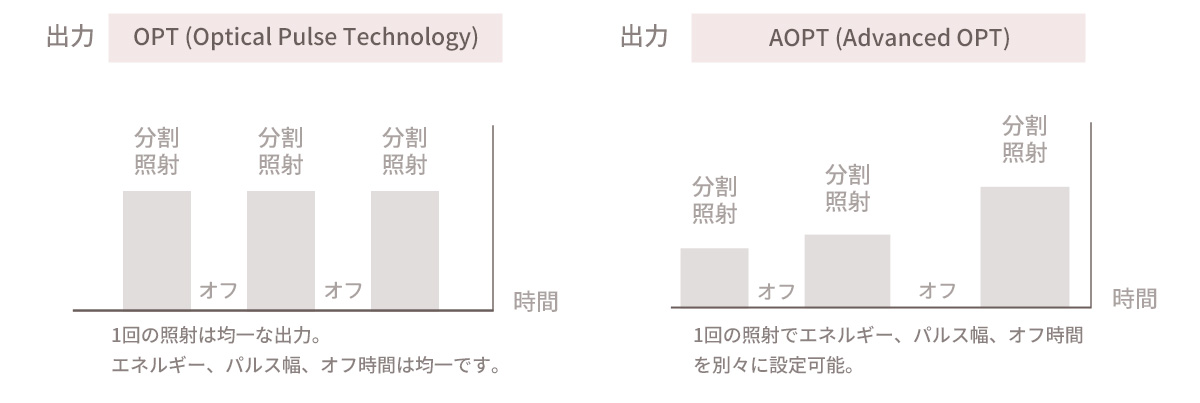 これをOPT(Optimal Pulse Technology:1回の照射を2~3分割して照射できる技術)と言います。